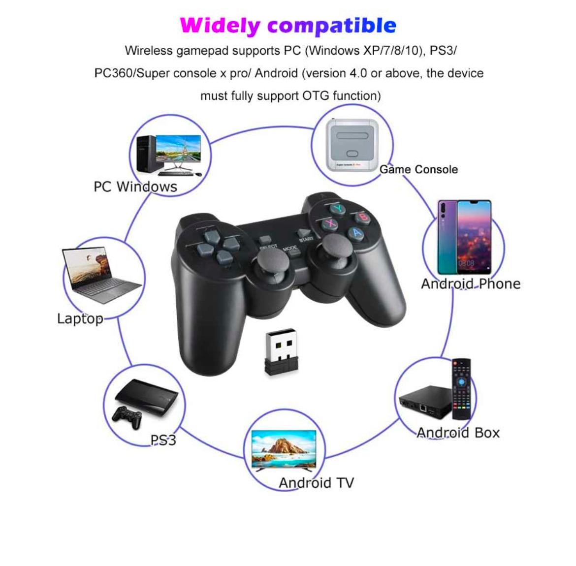 Upgrade your gaming setup with this 2PC 2.4G Wireless Dual Vibration Game Joysticks Controller Set, designed for seamless performance across multiple platforms including PC (Windows XP/7/8/10), PS3, Android devices, and TV Boxes. These ergonomic gamepads offer a wireless plug-and-play experience with stable 2.4GHz connectivity, giving you the freedom to game without tangled wires.
