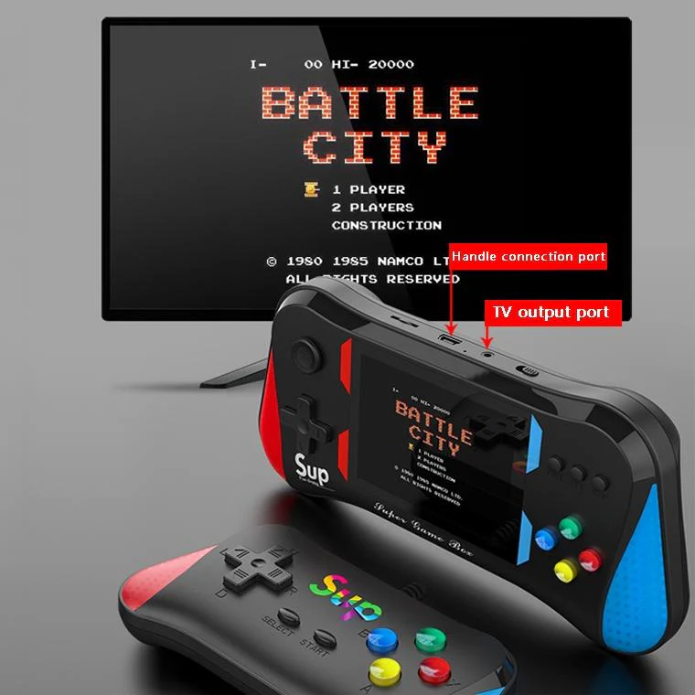 Engineered for both solo and two-player modes, the console includes an external joystick for engaging multiplayer action. Thanks to the 1200mAh rechargeable battery, you’ll enjoy extended playtime on the go—whether at home, during travel, or while connected to your TV using the AV output.