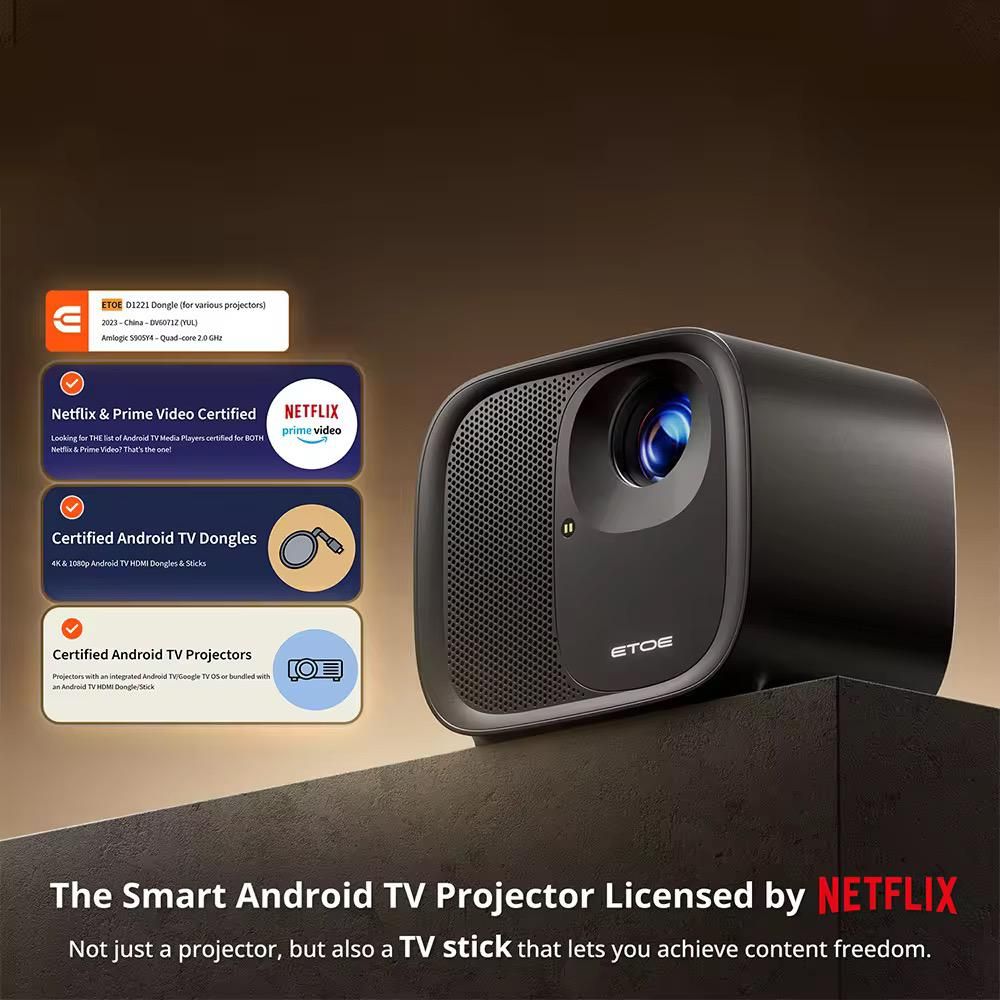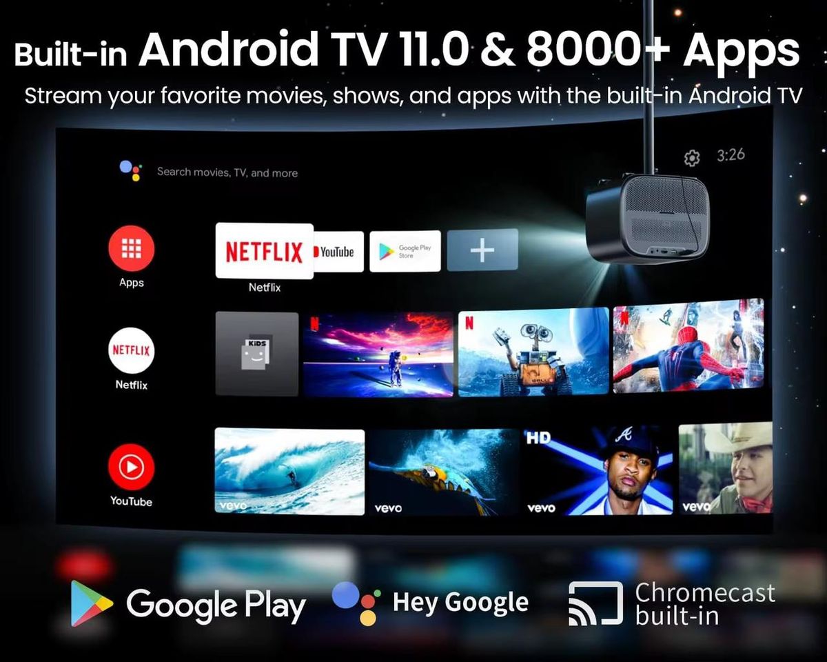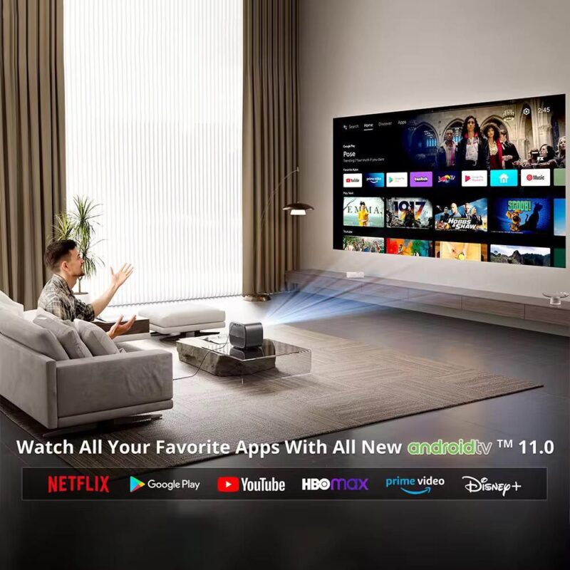 Experience the magic of cinema in your living room with the Android Smart TV Projector – 600 ANSI Lumens. Officially certified by Google and Netflix, this projector runs on Android TV 11.0, giving you seamless access to 8,000+ streaming apps including DStv Now, Netflix, Prime Video, Disney+, Showmax, YouTube, Spotify, and more — all built-in with no TV box needed.