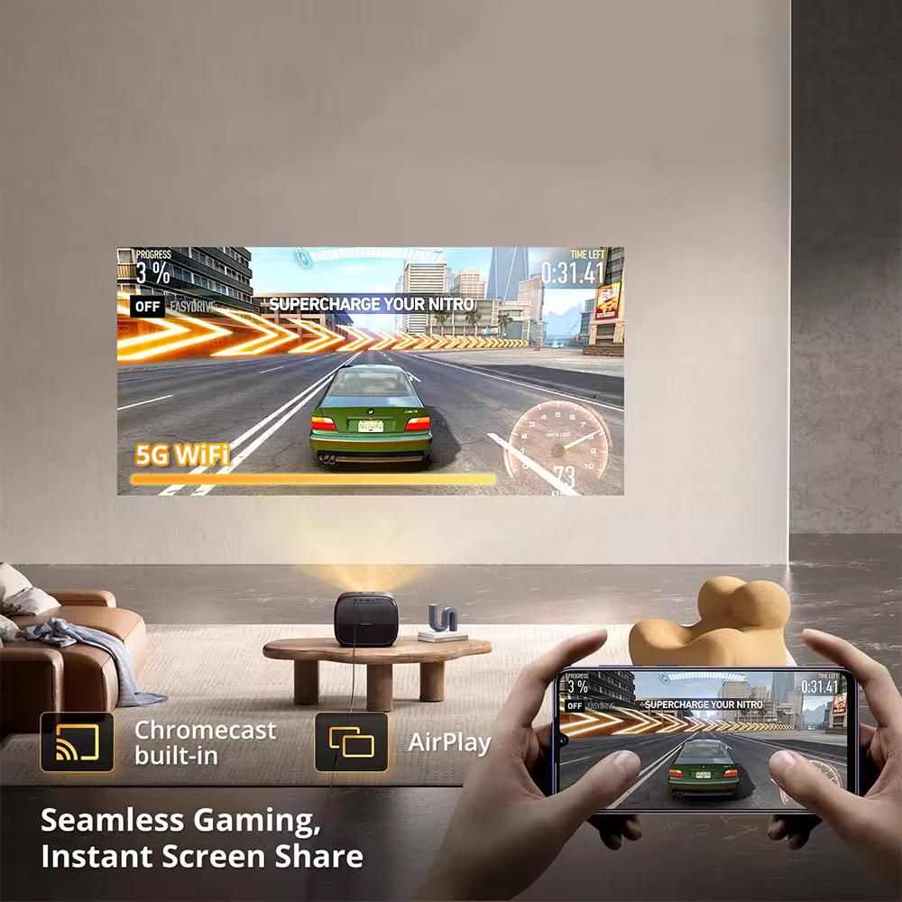 With TOF Auto-Focus, 360° Keystone Correction, and 600 ANSI brightness, you’ll enjoy ultra-clear visuals up to 150 inches — ideal for movie nights, gaming, sports, and even outdoor setups.