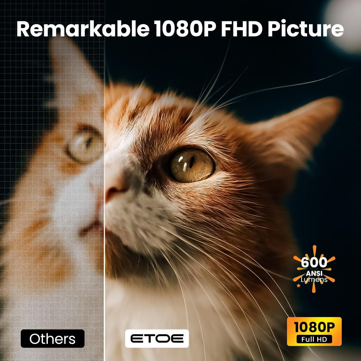 💡 600 ANSI Lumens Brightness + Full HD 1080p Resolution