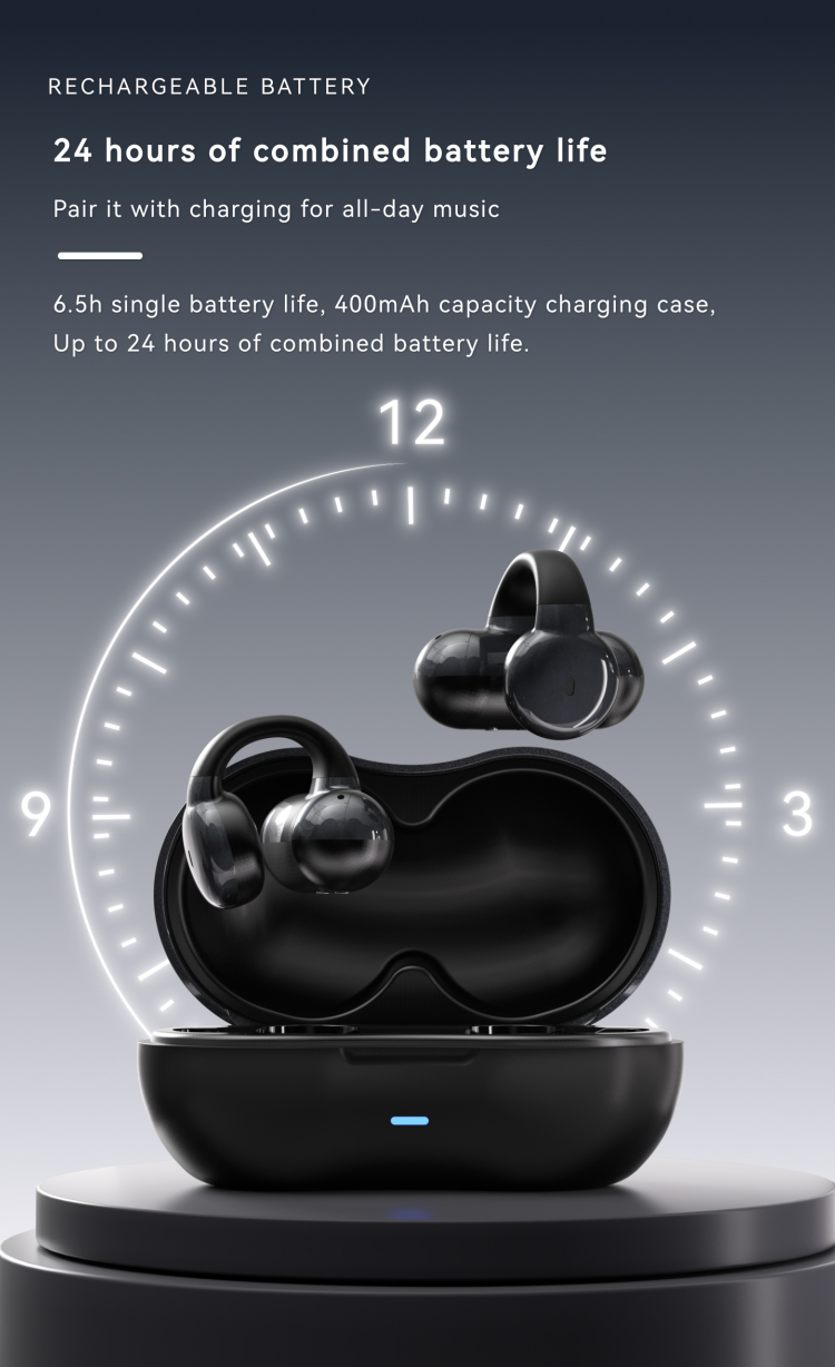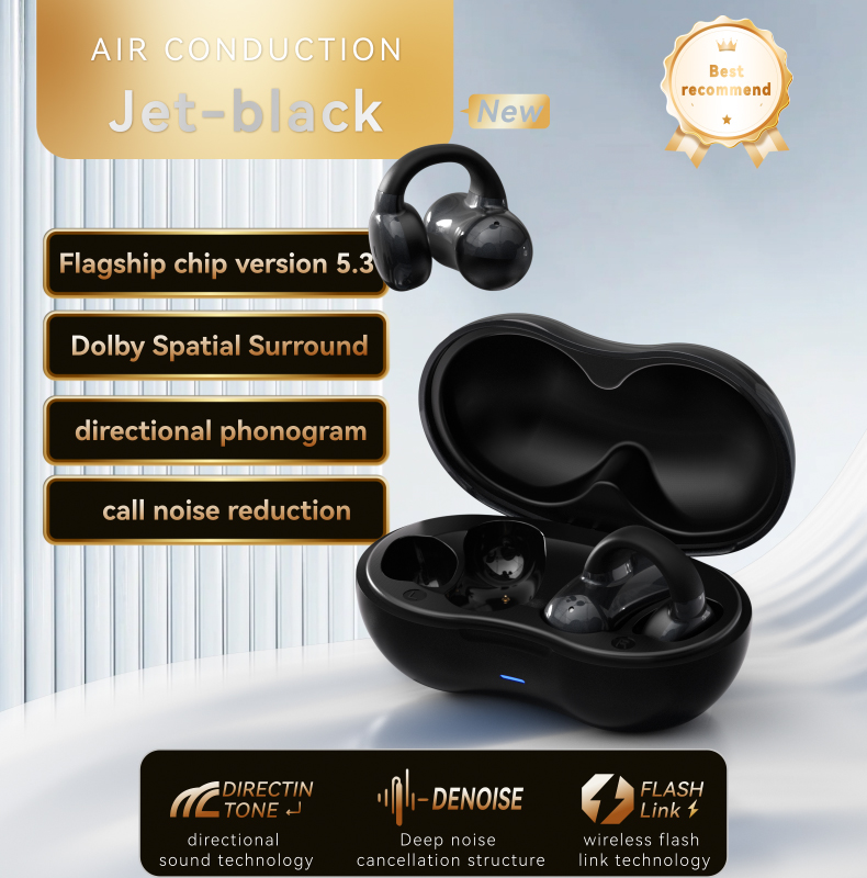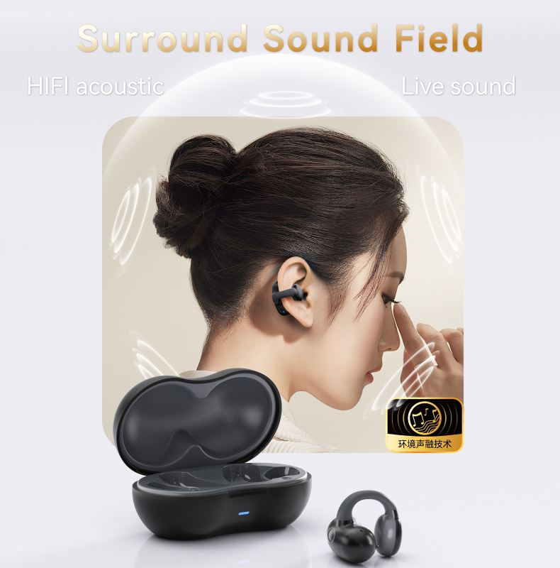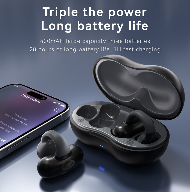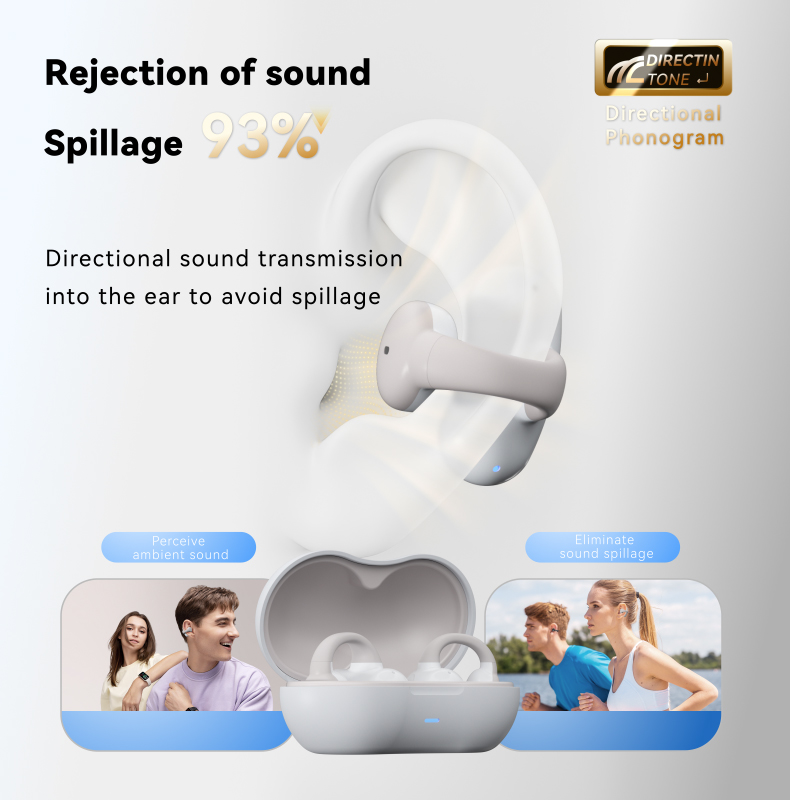 🔊 Open-Ear Clip Design – Secure & Comfortable
