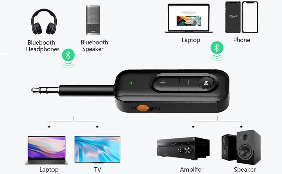• 👥 Dual Connectivity – Stream audio to two Bluetooth devices simultaneously in TX mode