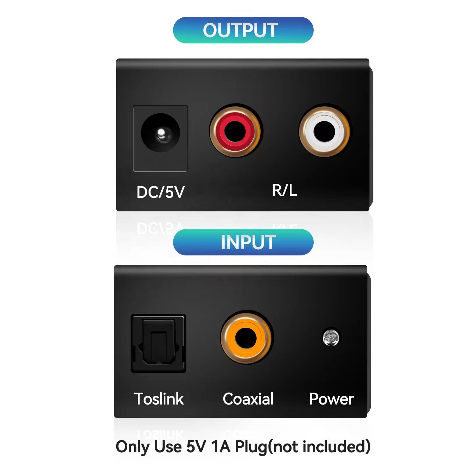 • Premium Audio Conversion: Converts optical (TOSLINK) or coaxial digital signals into RCA stereo output for rich, noise‑free sound.