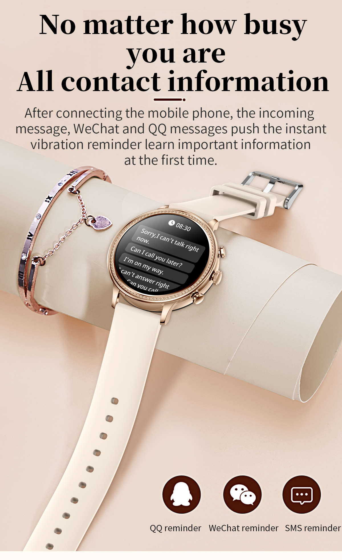 Step up your tech game with the GC Smart Watch for Smart Ladies, a sleek, all-in-one smartwatch designed for modern women who want to stay connected, fit, and fashionable. Featuring Bluetooth call support, multi-sport tracking, and comprehensive health monitoring, this lightweight smartwatch does it all—without compromising your look.