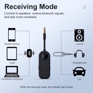🔁 2-in-1 TX & RX Modes: Switch between Transmitter mode (TV to Bluetooth headphones) and Receiver mode (phone to AUX speaker).