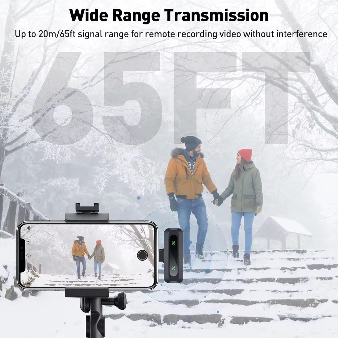 2. High-Quality Audio Recording: Our Wireless Microphone uses an imported high-end mic chip for omnidirectional sound capture, ensuring crystal-clear audio recording without interruptions. Record while charging your device effortlessly-our receiver offers a direct phone charging interface, allowing you to focus on your content while keeping your devices powered up.