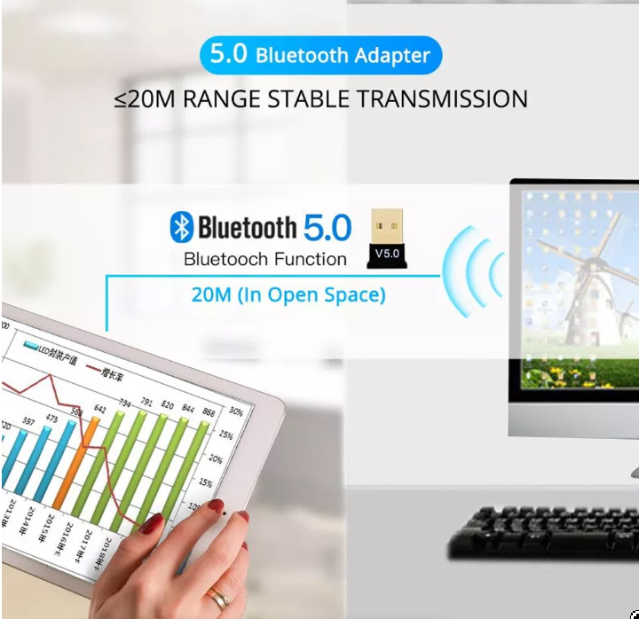 Powered by the BR8041 intelligent Bluetooth chip, this dongle ensures faster transfer speeds, stable signal strength, and low power consumption, making it the ideal Bluetooth solution for Windows-based desktops and laptops.